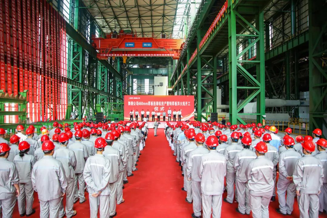 吝章国强调,特厚板淬火线项目的正式开工,标志着舞钢公司将向钢铁材料性能的极限发起新的冲锋,瞄准世界顶尖水平的特厚板热处理工艺技术,以满足最严苛工程应用环境、制造最尖端“国之重器”为目标,实现从“材料制造商”向“材料解决方案服务商”的重要跨越。未来在祖国的深蓝海洋、极地冰原和浩瀚苍穹,都将闪耀更多舞钢公司供货制造的“钢筋铁骨”和无上荣光。今天的投产与开工仪式,即是号角,更是起点!舞钢公司将以“钢铁报国”的赤子之心,以“人无我有”的开拓进取精神,全力保障460mm厚板连铸机高效稳定运行,高标准推进特厚板淬火线项目建设,共同书写舞钢公司更加壮丽、更加辉煌的新篇章,为集团的高质量发展,为中国钢铁工业的腾飞,为实现制造强国的伟大梦想,贡献舞钢公司的钢铁力量。