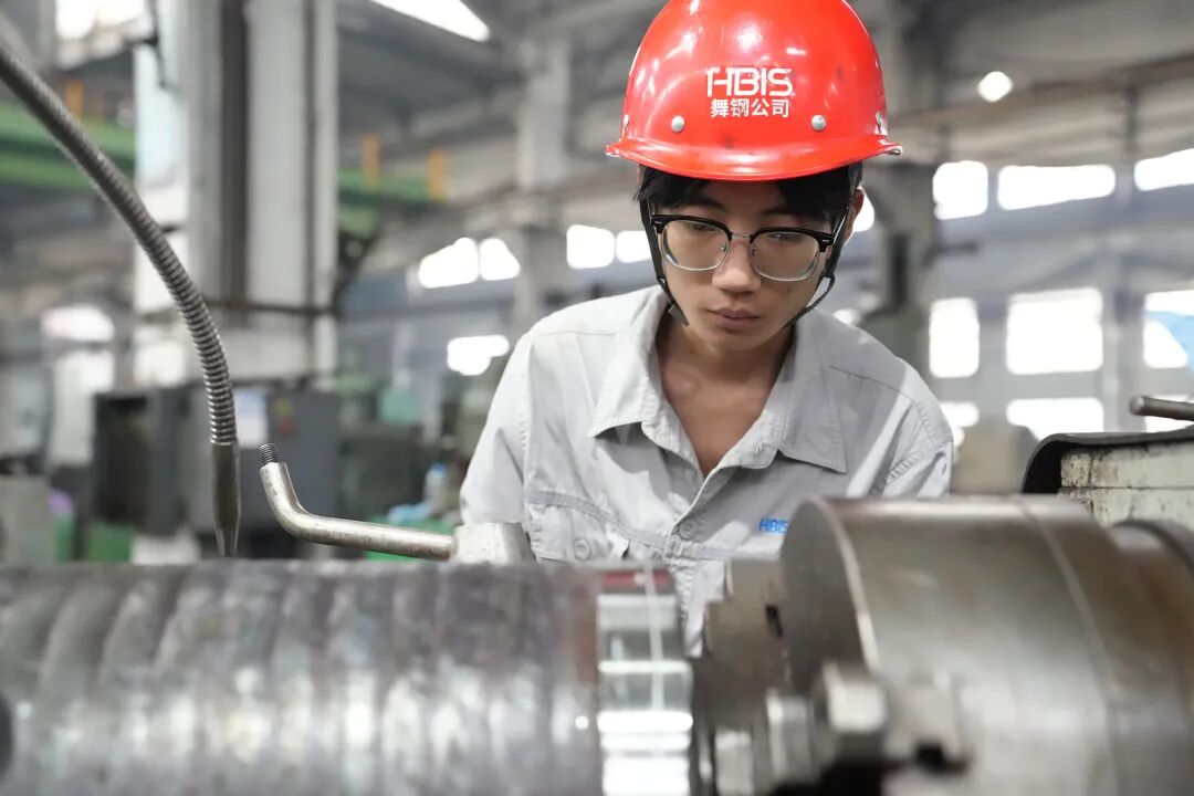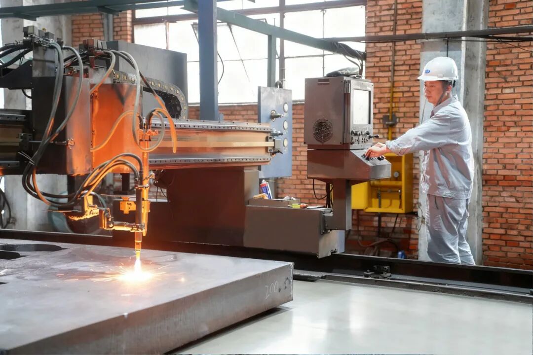 叁和盛机建公司以“淡化氛围、强化履约”为导向,科学编排全流程生产网络,通过错峰调度、弹性排班等方式,最大化释放产能。该公司紧盯重点项目节点,将质量管控贯穿原料入厂、加工制造、成品检验等各个环节,坚决守住交货期与品质“双底线”。图为机修分厂职工正在认真切割深加工件。