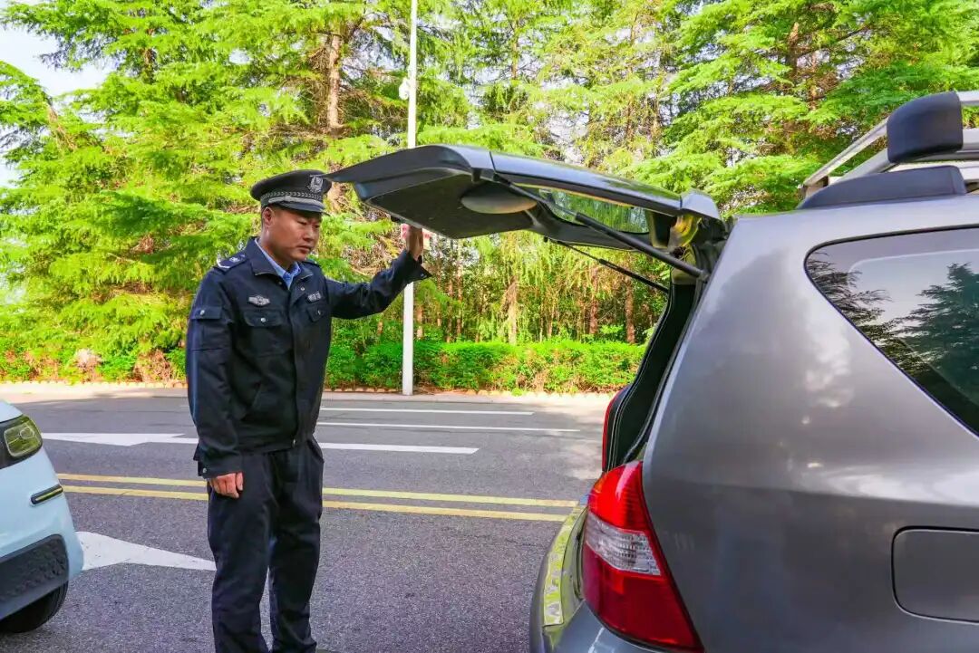 为守护公司财产、人员安全,武装保卫部严格落实安全保卫工作部署,要求各门岗执勤人员坚守岗位、履职尽责,执行出厂车辆“一车一挡、逢车必查”制度,坚决杜绝各类物资流失,为舞钢公司度过一个安全、稳定的国庆假期保驾护航。图为武装保卫部一号门岗执勤人员正在对出厂车辆进行检查。