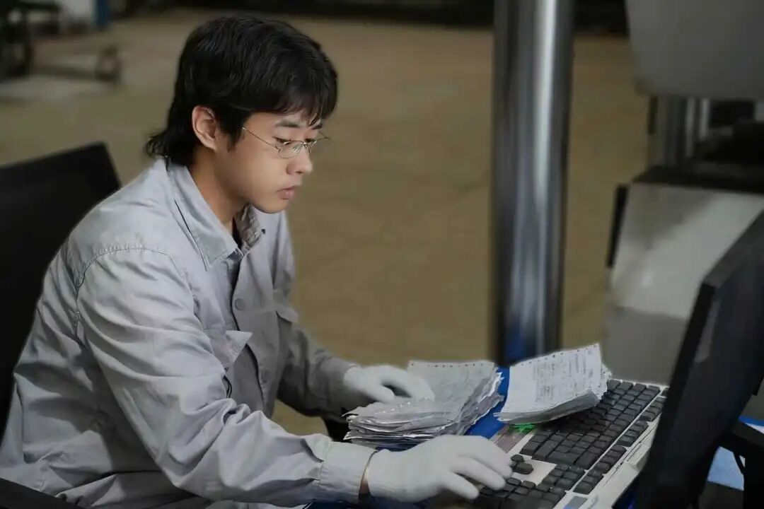 为保障公司产物及时入库、顺利发运,质量管理部物理性能检验作业区力学检验人员坚持业绩导向,以高度的责任感和使命感,认真对待每一个环节,用实际行动为舞钢公司高质量发展贡献力量。图为该作业区物理性能检验人员正在输入钢板拉力试样检验数据。