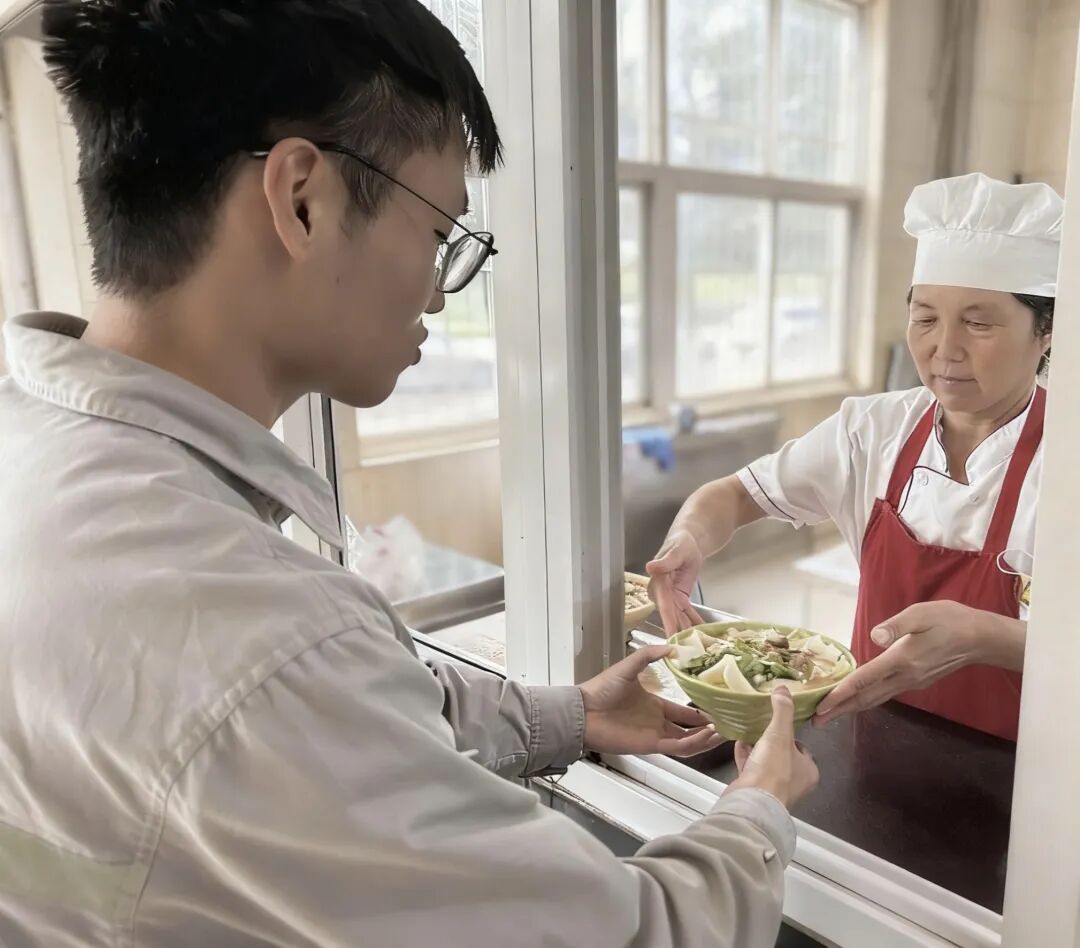 国庆假日期间,生活服务部厂区服务部食堂内暖意融融,工作人员以“国庆我在岗”的坚守,默默做好后勤保障,用热腾腾的饭菜传递关怀,为岗位职工安心工作提供坚强后盾,在平凡岗位上诠释责任与担当。图为食堂工作人员正在将香气扑鼻的饭菜递到前来就餐的职工手中。