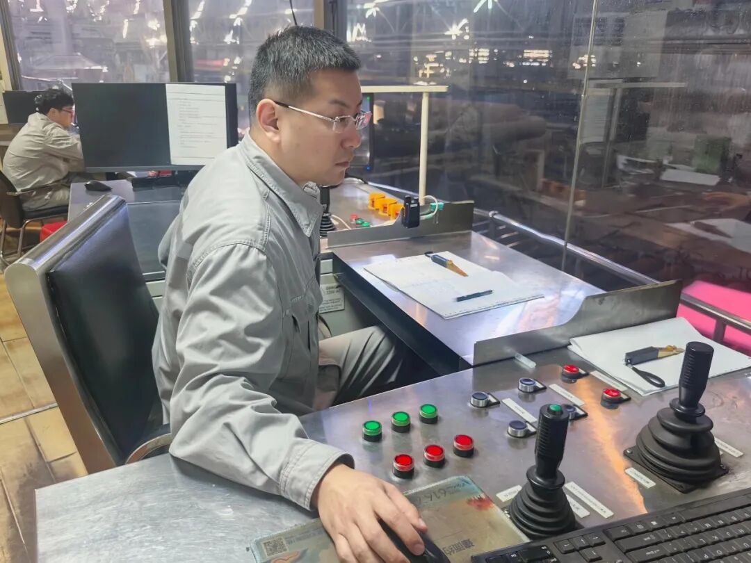 第一轧钢厂干部职工淡化节日气氛,立足于提升产线效能,聚焦四季度生产任务,将指标任务细化分解到班组、岗位,合理排产,规范操作,狠抓工序衔接,优化精轧机控制程序,合理减少轧制道次,提高轧制速度,确保生产高效稳定。图为4300mm精轧机操作工正在精心操作精轧机。